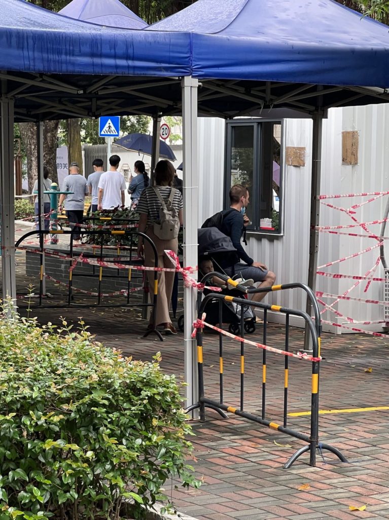 Die Schlange an der Teststation war zwar relativ lang, das Testen ging aber sehr schnell. Zunächst braucht man einen grünen Health Code (hier ist der letzte PCR-Test hinterlegt), um überhaupt getestet werden zu können. Danach lässt man einen anderen QR-Code scannen, damit der Test zugeordnet werden kann. Und hinterher bekommt man – hoffentlich – dann wieder seinen grünen Health Code (mit dem man dann wieder zum Testen darf und sich allgemein als gesund ausweisen kann/muss). Wir haben gehört, dass die Tests von zehn Leuten gemeinsam ausgewertet werden. Das würde auf jeden Fall erklären, wie man eine ca. 2,5 Millionenstadt an einem Tag durchtesten kann. Und warum nach 10 Leuten eine Person das Röhrchen für die Tests der nächsten zehn Personen in die Hand gedrückt bekommt. Wir haben aber auch mitbekommen, dass manche Leute gar nicht beim Testen waren. Ohne Test kommt man nur nirgends mehr rein. Selbst beim Hotel brauchen wir einen Test (wie wir festgestellt haben, als plötzlich drei Wachmänner an den Schranken zum Hotelbereich saßen). Wie alt der Test sein darf? Wir wissen es nicht genau. Nach etwas Ärger mit einem 48h-Test und aufgrund der Tatsache, dass Krankenhäuser einen maximal 48h-Test erwarten und manche Malls einen 24h-Test, tapern wir nun alle jeden Tag brav zum Testen. Auch Aurelia macht jedes Mal brav den Mund auf. Nach ihrem Testergebnis hat zwar noch niemand gefragt, aber wir sind da lieber abgesichert.