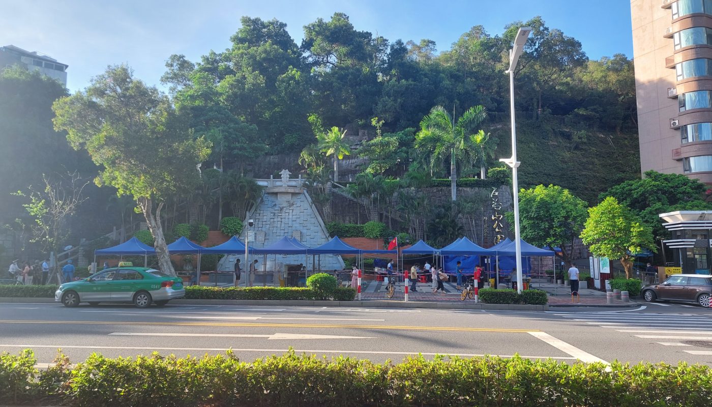 Am Sonntag (19.06.2022) waren wir mittags verabredet. Nach einem schönen langen Frühstück mit Claudia, Jürgen, Jörn und Friedhelm lagen wir auf dem Bett und haben ein bisschen gechillt bis wir los wollten und Aurelia hat geschlafen. Dann kamen die ersten Nachrichten in WeChat. Macao hat 12 positive Fälle, Massentest in Zhuhai. Wir haben es also genau eine Woche ohne Test geschafft.